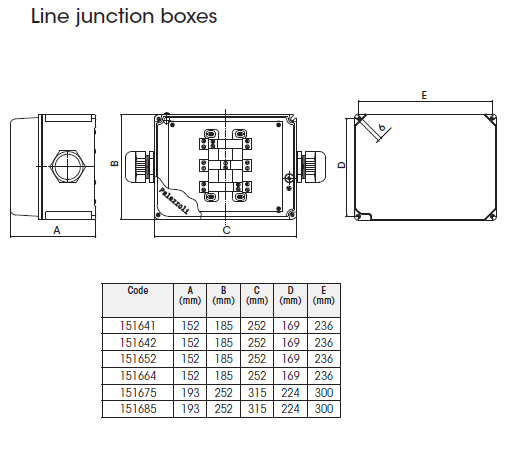 The TUNNEL54 series is a range of devices dedicated to lighting systems. It includes specific products for junctions made in aluminium alloy or in reinforced self-extinguishing technopolymer, with IP66 protection rating. They consist of quick wiring insulation-piercing boxes, with universal entry of cables up to 35mm2 or with ceramic terminal block. The junction boxes for emergency systems guarantee continuity of service at 850°C for 90 minutes, are processed with ecological fluorizirconic passivation treatment and painted with hot-polymerised non-toxic polyester powders. The connections can be achieved by means of a plug-type socket IEC/EN 60309-1 and IEC/EN 60309-2, or by means of a cable gland.