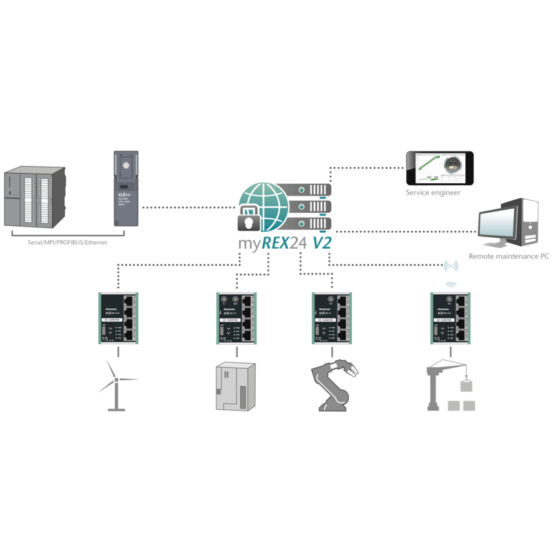 - Secure OpenVPN remote maintenance access via myREX24 V2 portal