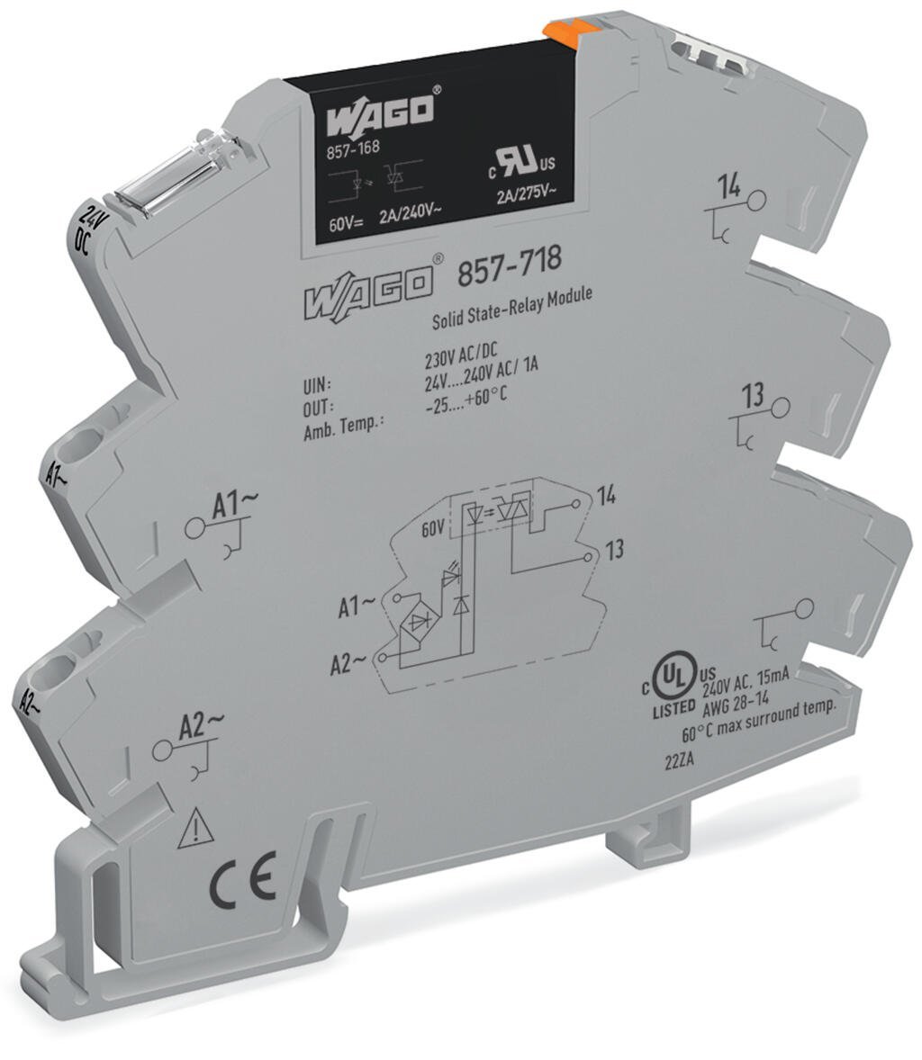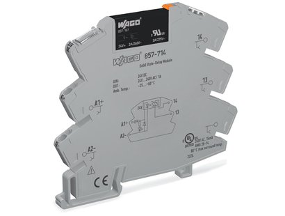 Solid state relay module with yellow LED for status indicator. Output 2 A. WAGO