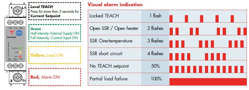 The SSR can be TEATCH the nominal current with a simple pushing of a membrane button in front side (local) or via remote teatch mode.