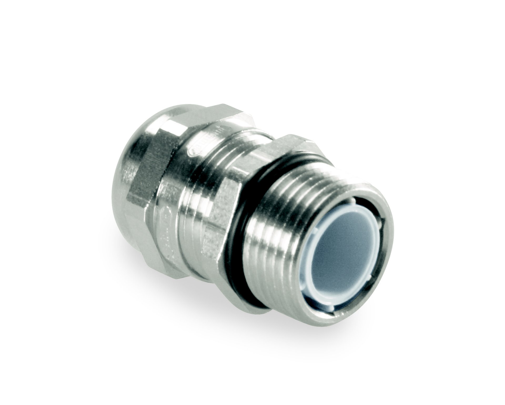 - Cable glands in nickel plated brass with metric threading with long thread IP68