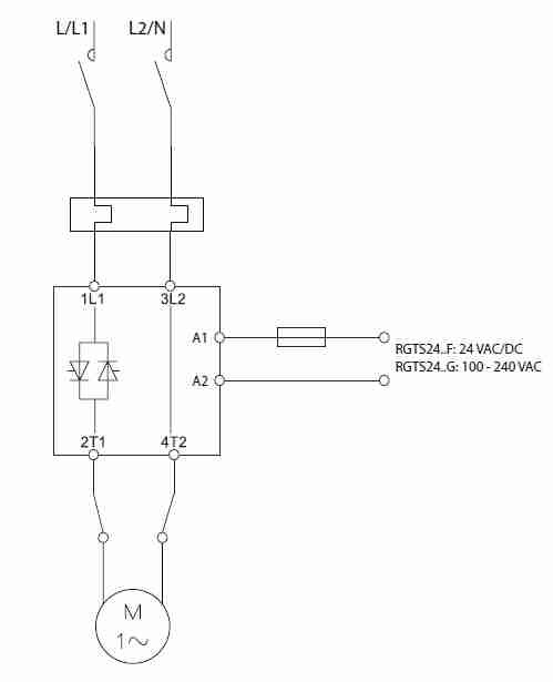 The RGTS is a very simple soft starter for low starting torque single phase AC induction motors. It only requires two easy settings for initial torque and ramp-up duration.