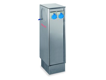 - Turrets for campsites in AISI 316L stainless steel with 4 interlocked sockets 50-60Hz IP56