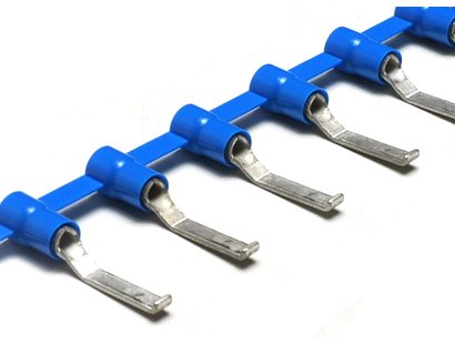 Halogen free insulated hooked blade terminals in roll. Cembre