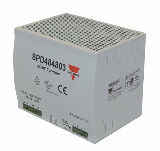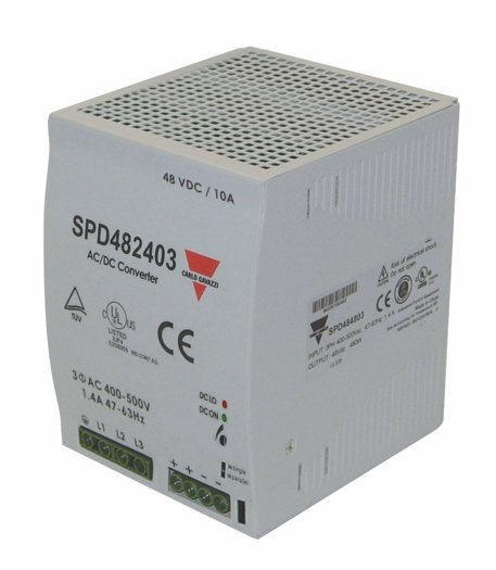 The three-phase switching power supplies of Carlo Gavazzi are available in 120 , 240 , 480 and 960 W, with output voltages 12 or 24 or 48 V DC.