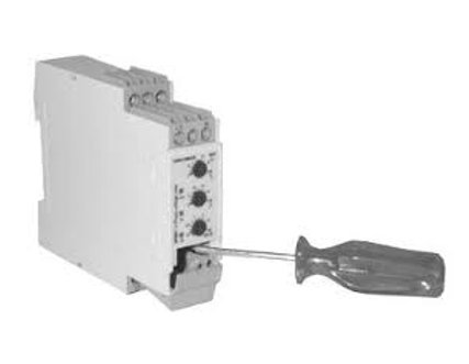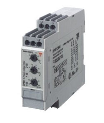 TRUE RMS AC over and under voltage for 3-ph, Phase sequence and phase loss. There are 3 potentiometer on the front side (for voltage setting, for undervoltage setting and for alarm delay time). Also there are DIP-switches (for measuring range, for power on delay and for monitoring voltage).