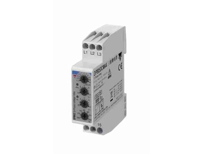 3-Phase relay for detection of incorrect phase sequence and phase loss, over and under voltage (separately adjustable setpoints) with build-in time delay function.
