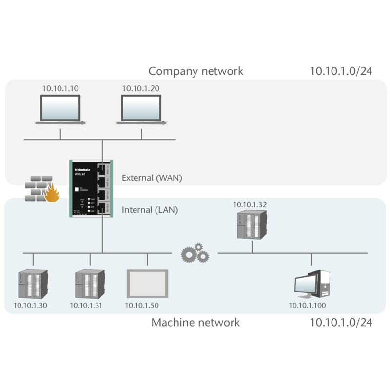 Secure communication and simple addressing – WALL IE protects your automation network against unauthorized access. Due to the individual configuration, the firewall can be easily adapted to the requirements of the respective machine network.