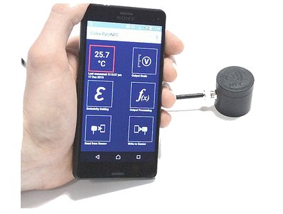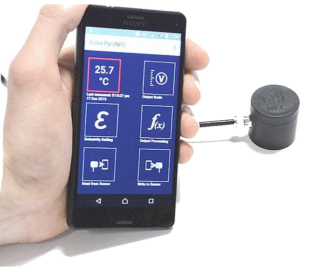 The sensor is fully configurable for emissivity setting, averaging, peak or valley hold processing, reflected energy compensation, alarm and more, via NFC (Near Field Communications) with the free PyroNFC app for Android.