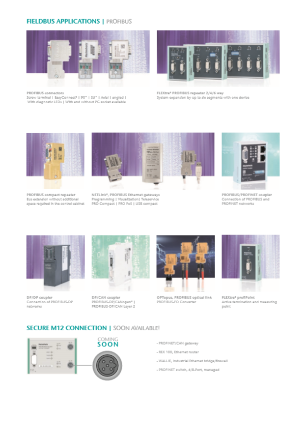 New industrial Ethernet Switches Unmanaged 10/100/1000 as well as IP67 series, Industrial Ethernet PROFINET Switches Managed 10/100/1000 as well as IP67 series, as well as industrial type Ethernet terminals, Couplers-Gateways for PROFINET / PROFIBUS / CAN BUS / MODBUS and solutions for remote I / O system, will be available from our company.