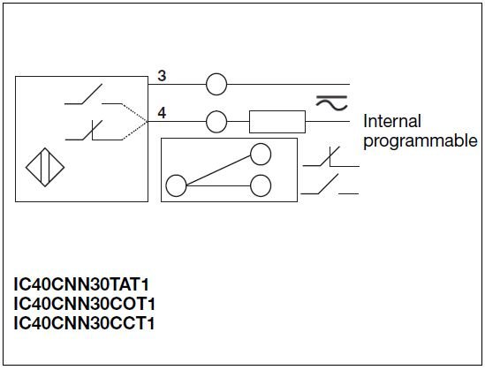 IC40CNN: AC-DC Inductive sensors in a rectangular plastic body with adjustable head that can take up to 5 different sensing positions. The dimensions and the mounting positions (screwing) is exactly the same as the conventional limit switches.
