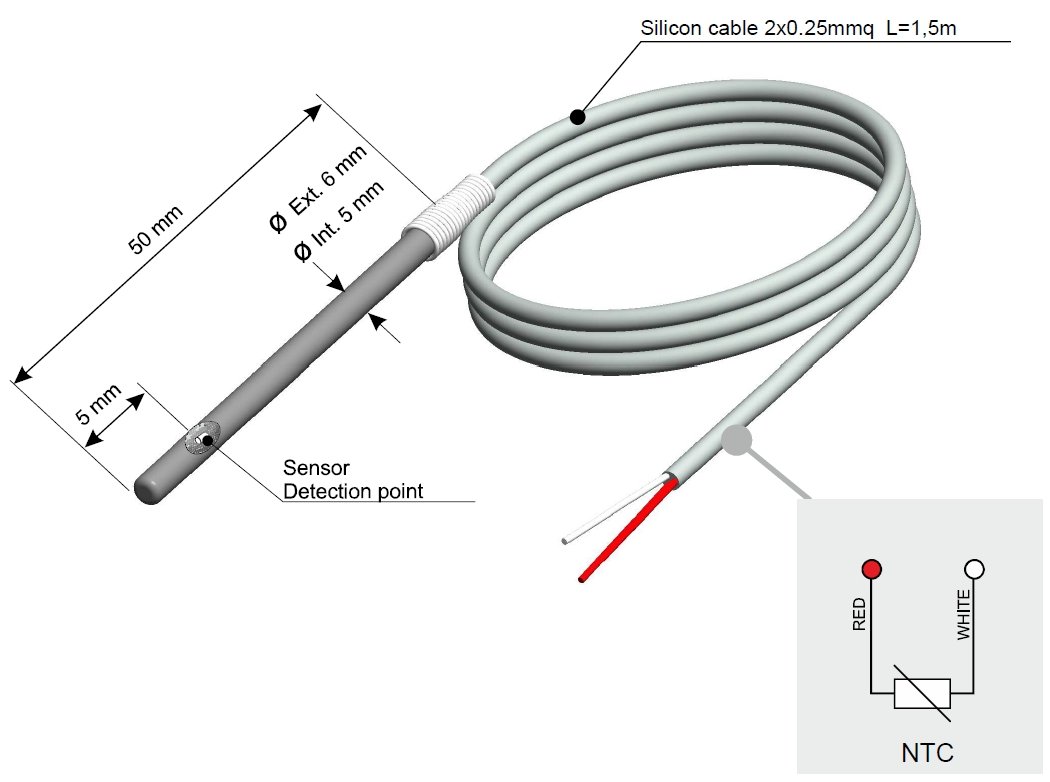The Easy-up probes are assigned a numeric code that once inserted allows the Pixsys controllers to automatically set the main operating parameters. For the NTC 10K the code is 2203