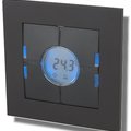 Temperature controller with display, 4 buttons and 4 LEDs. It is developed to be mounted into a 44x44mm and 55x55mm wall socket. The TEMDIS display can manage 6 automatic setpoints (3 for heating and 3 for cooling) and one manual setpoint to let the user manage in the most comfortable way the temperature in his home. Also shows current room temperature, floor temperature and outdoor temperature.