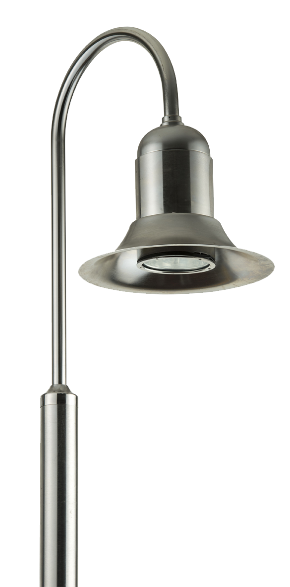 LED system with, bell shaped body and pole, both realized in AISI 316L stainless steel. Maximum power 32W. Available optics: street.