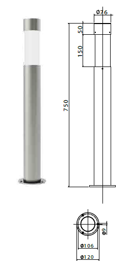 Bollard luminaires in stainless steel AISI 316L. With its minimal, evergreen design and its diffuse lighting it is ideal for gardens and parks.