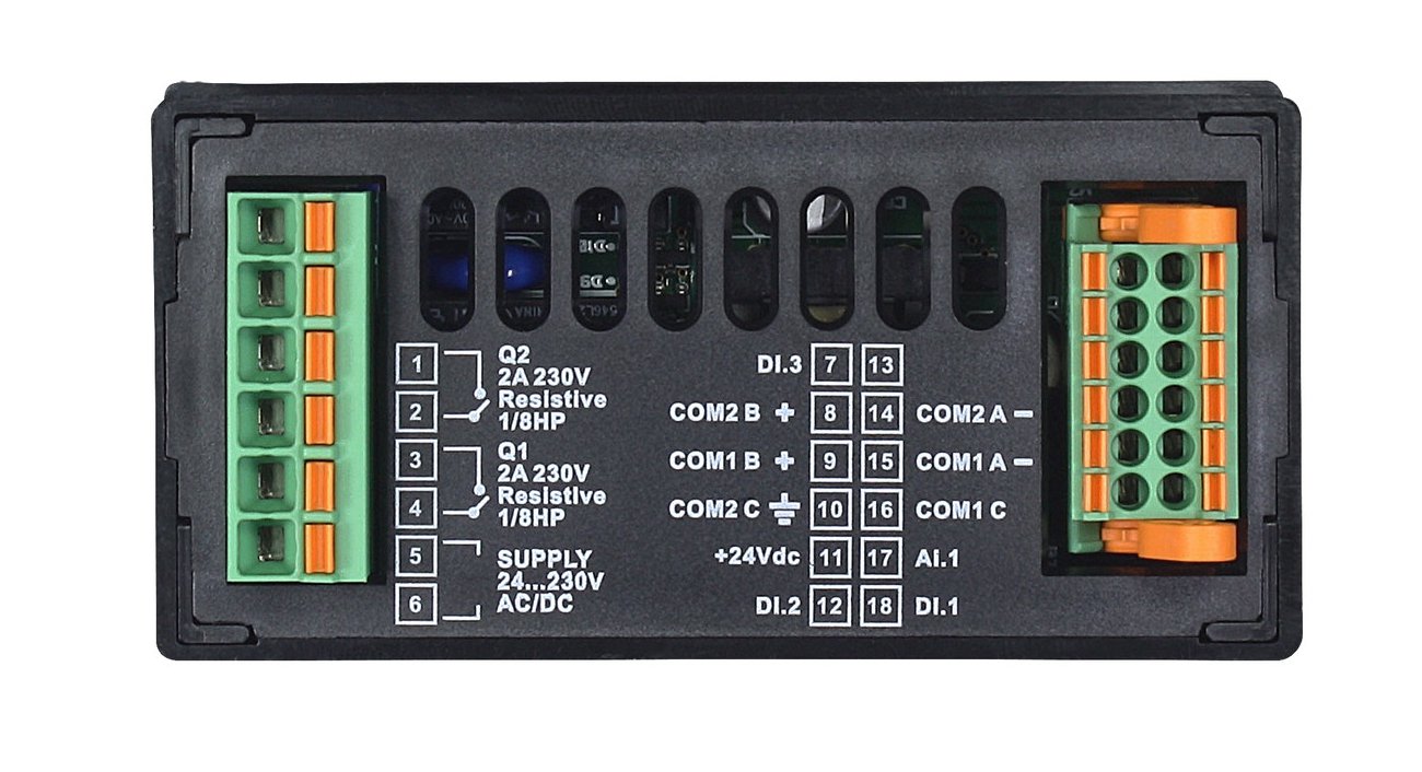 - Digital inputs: 2 x digital PNP/NPN inputs programmable to enable outputs, reset alarms, configuration lock, increase/decrease value, front panel encoder for input data and 1 x PNP input programmable to select values