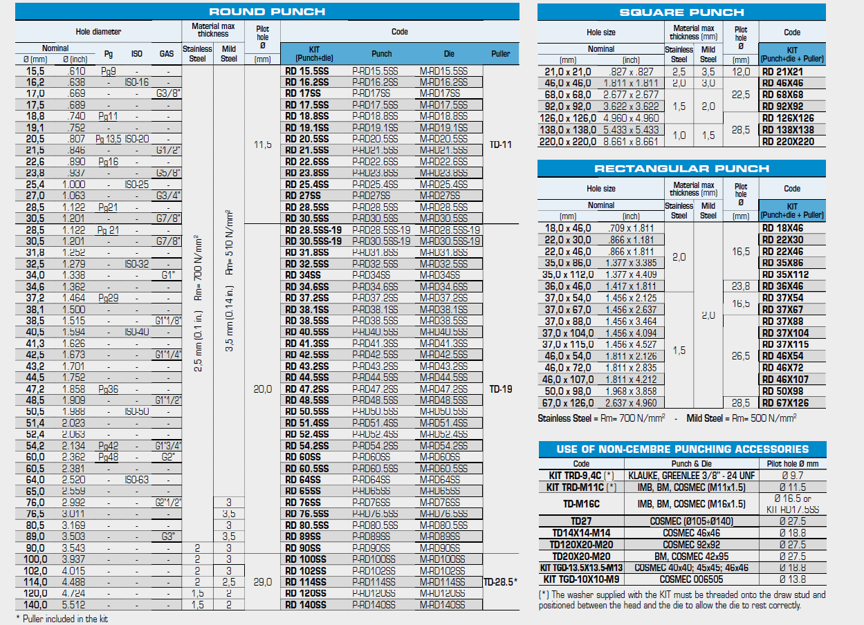 Punching TypeΣτρογγυλή, τετράγωνη και ορθογώνια