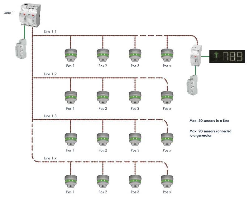 The Parking Guidance System uses sensors/indicators and displays with arrows to guide the drivers to the vacant spaces in indoor carparks. The unique feature of the system is the integrated option to save energy by controlling lighting and ventilation according to demand