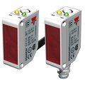 Reinforced PMMA/ABS housing (10 x 30 x 20 mm) DC polarized retro-reflective photoelectric sensors. There is a Teach-In button for adjustment of the sensitivity (and type of output). Also, there is a second output for dust alarm when the photoelectric sensor is feeling dirty!
