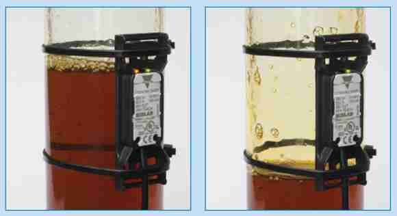 The CD34.. sensor offers a highly reliable detection of media such as water, syrup, milk, body fluids (blood) as well as acid or alkaline solutions with a conductivity as high as 50 mS/cm.