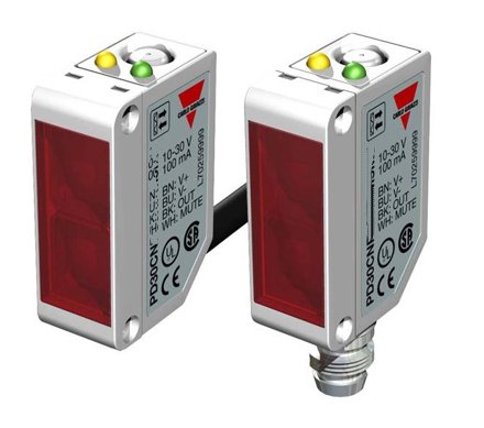 Reinforced PMMA/ABS housing (10 x 30 x 20 mm) DC retro-reflective photoelectric sensors. There is a Teach-In button for adjustment the type of output and the sensitivity, but the user also can remote teach the settings of the photoelectric sensor via a cable (e.g. a PLC).