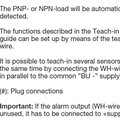 The switching points can be altered by means of the teach-in function. 3-wire DC output with selectable make (NO) or break (NC) switching and NPN Alarm.