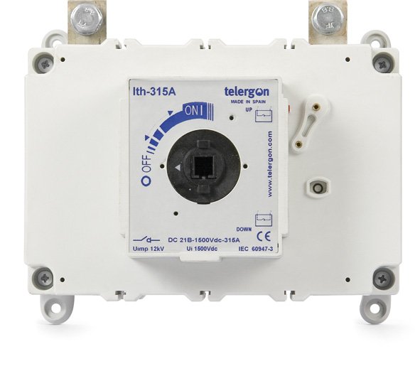 Switch–disconnectors 1 x + 1 x 315, 400Α/1500 VDC prefabricated with internal bridging , in strip connection and position of the switch (handle) on the middle, designed for easy installation. Suitable for correct disconnection on DC loads especially on photovoltaic systems.