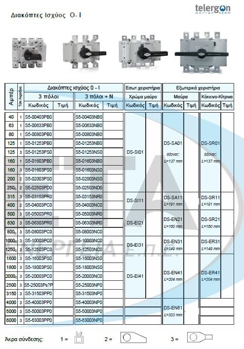 Switch–disconnectors 0-Ι AC S5000 3 x , 3 x +N 1000A-1250A-1600A-1800A-2000Α .Telergon
