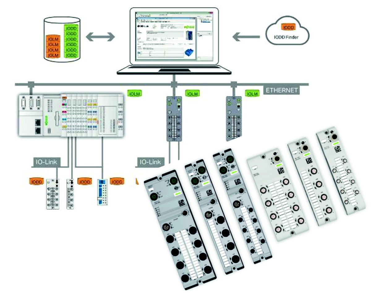 Convenient access to the IO-Link user organization’s IODD finder is available for the IODDs. This allows automated, selective download of IODDs when integrating new IO-Link devices.