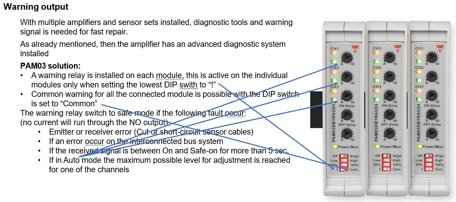 With several amplifier modules and sensors installed an error can be difficult to allocate. Downtime on a machine is very costly so easy fault finding will be highly requested