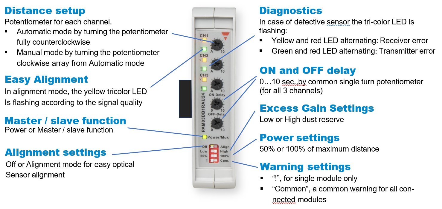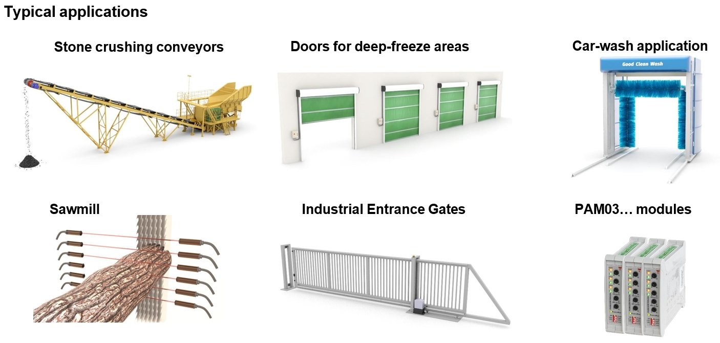 The PAM03 Series meets international door standards, including EN 12453, EN 12978, UL 325, and UL 508 and is designed for operation in harsh industrial environments where traditional sensors may be compromised by environmental conditions.