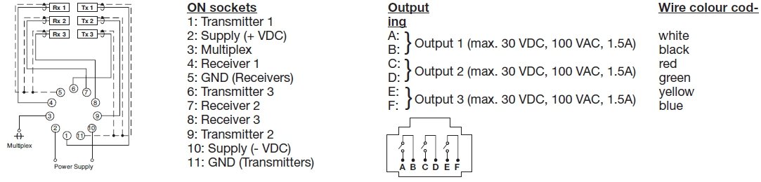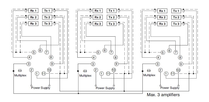 - Function: Multiplex system amplifier unit for 3 pairs of through-beam photocells