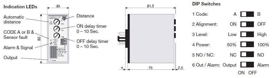 LED indication: Automatic gain, output, level, emitter or receiver fault. Diagnostic: If a fault occurs on either the emitter or receiver the Alarm LED and output will turn ON.