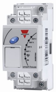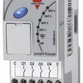 DIN relay output module to control AC or DC rollerblind motors that has been developed to be connected to and controlled by the smart-house system controllers.