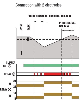 The combination of LVM30A.. with the 11SN1 electrodes is a good solution for controlling of the swimming pools water level but you can use the VH3 and VH4 Carlo Gavazzi probes for more delicacy and durability (VH3 and VH4 are the ideal solution for high resistive in chlorine and sanitary).