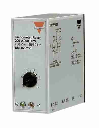The SM155… monitoring relay controlled by Namur/DIN 19234 sensor or metallic contact (such a microswitch, reed relay, limit switch etc. Also, there is the possibility to have reading of the rpm via moving-coil instrument.
