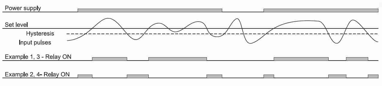 As the speed crosses a preset level, the output contact energises and will remain so until the speed returns to the normal level again.
