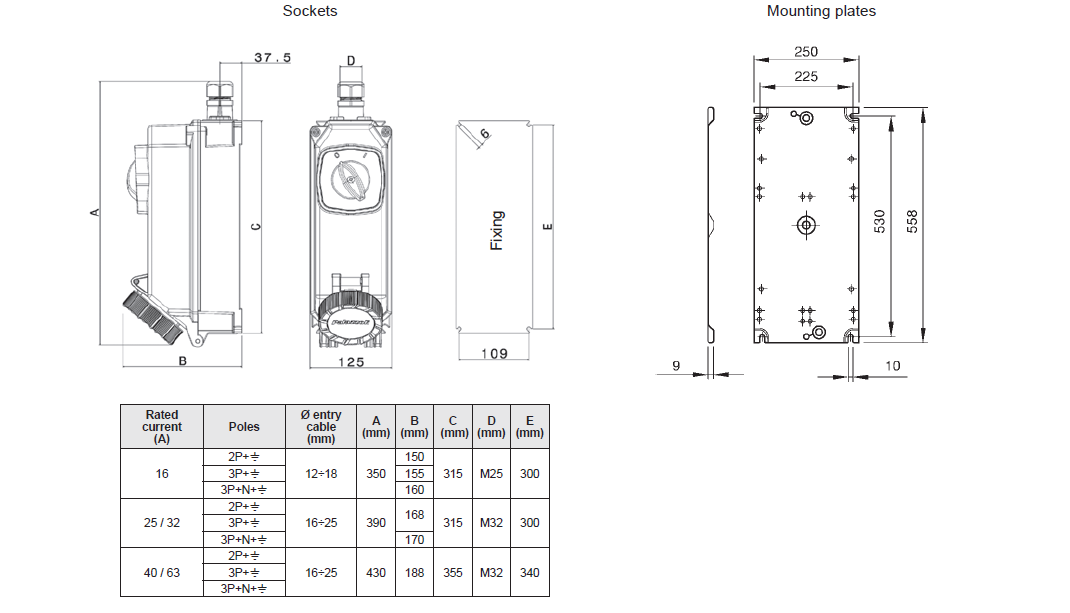- Modular interlocked socket-outlets in aluminium alloy with fuse-holder base for wall-mounting 50-60Hz IP66