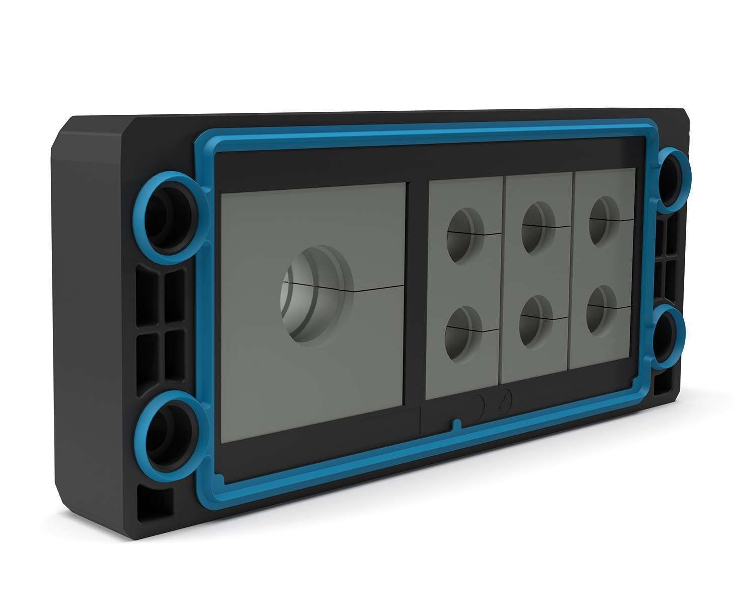 The frame of the EWO cable entry system made of glass-fibre reinforced PA6.6, with its slim and compact design, is equipped with an innovative over moulded seal. This allows EWO to achieve a high level of IP66 protection without the need for an external seal. Thanks to this system, the CEMBRE cable entry systems prove to be a versatile and practical product, suitable for every operational requirement.
