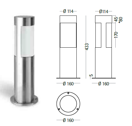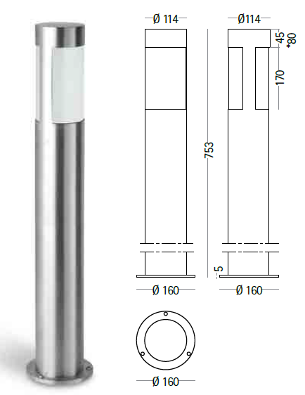 Bollard luminaires in stainless steel AISI 316L. With its minimal, evergreen design and its diffuse lighting it is ideal for gardens and parks.