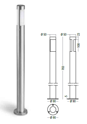 Bollard luminaires in stainless steel AISI 316L. With its minimal, evergreen design and its diffuse lighting it is ideal for gardens and parks.