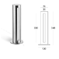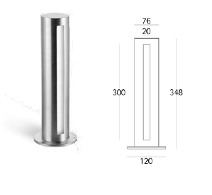Bollard luminaires in stainless steel AISI 316L. With its minimal, evergreen design and its diffuse lighting it is ideal for gardens and parks.