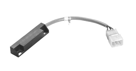 Magnetic sensors in rectangular plastic housing 90 x 20 x 16 mm with two outputs: one low power NC (5 VA) and one high power NC (100 VA).