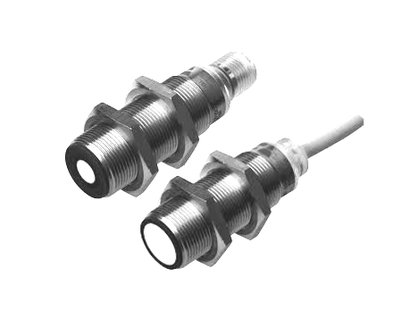 Ultrasonic sensors in M18 stainless steel body with sensing up to 30 cm or 80 cm. There is microprocessor control of the digital filtering that makes the sensor immune to most electromagnetic interferences and the output is one analog output with positive or negative slope in 0-10 V or 4-20 mA. The adjustments are ‘’teach by wire’’.