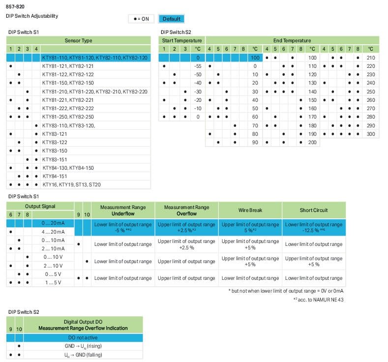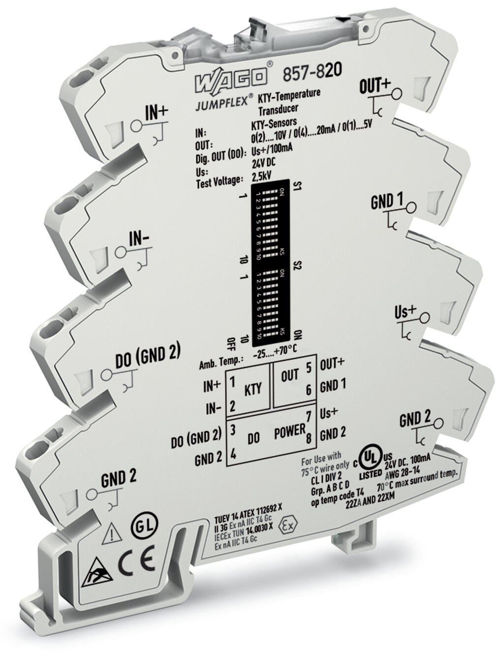 Temperature signal converter for KTY sensors. 857-820 WAGO