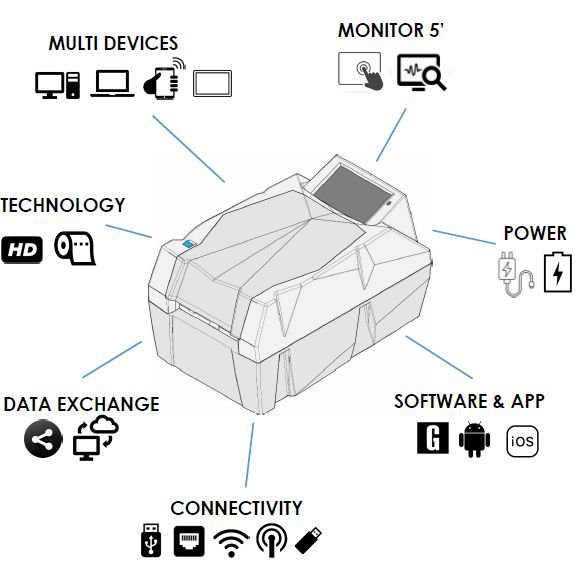 • High quality in printing, Mg4 has a resolution of 300x600dpi that allows to print QrCode, logos and images in high definition.