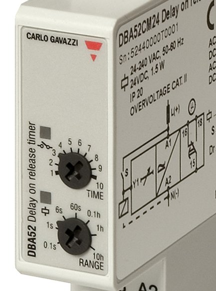 Multi-voltage Delay on Release timers with 7 selectable time ranges within 0.1 s and 100 h. For mounting on DIN-rail housing, suitable both for back and front panel mounting.