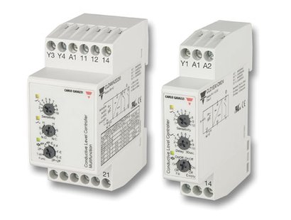 Carlo Gavazzi multi-voltage Interval (multifunction) mini-DIN timers with 1 or 2 contacts. Time range: 0.1 s - 100 h