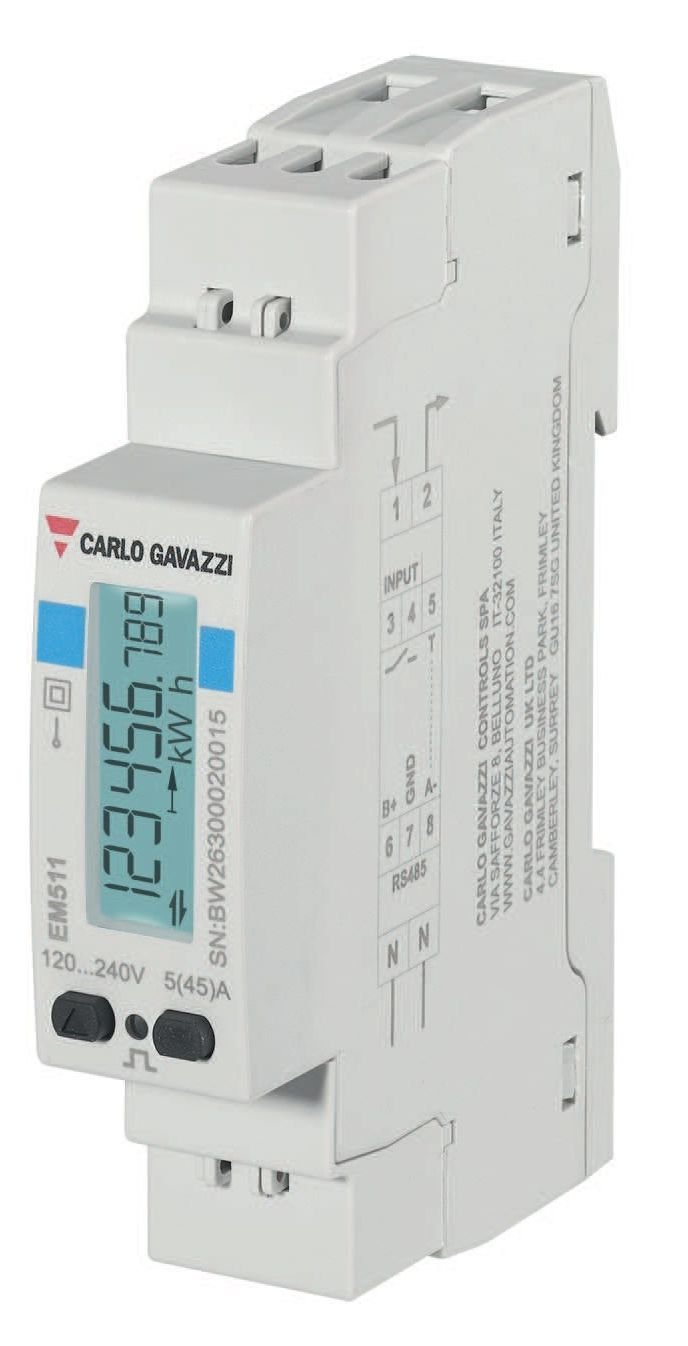 1-phase energy meter/analyser. Direct connection up to 45A. Integrated MECHANICAL keys. Carlo Gavazzi
