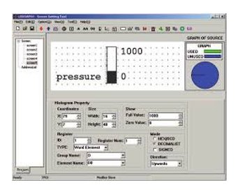 The LRX SW P01 editor software permits to make dedicated screens by taking advantage of the graphic display to view bitmaps, bar graphs and trend lines.